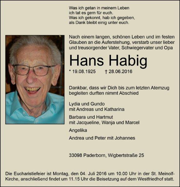 Hans Habiggestorben am 28. Juni 2016