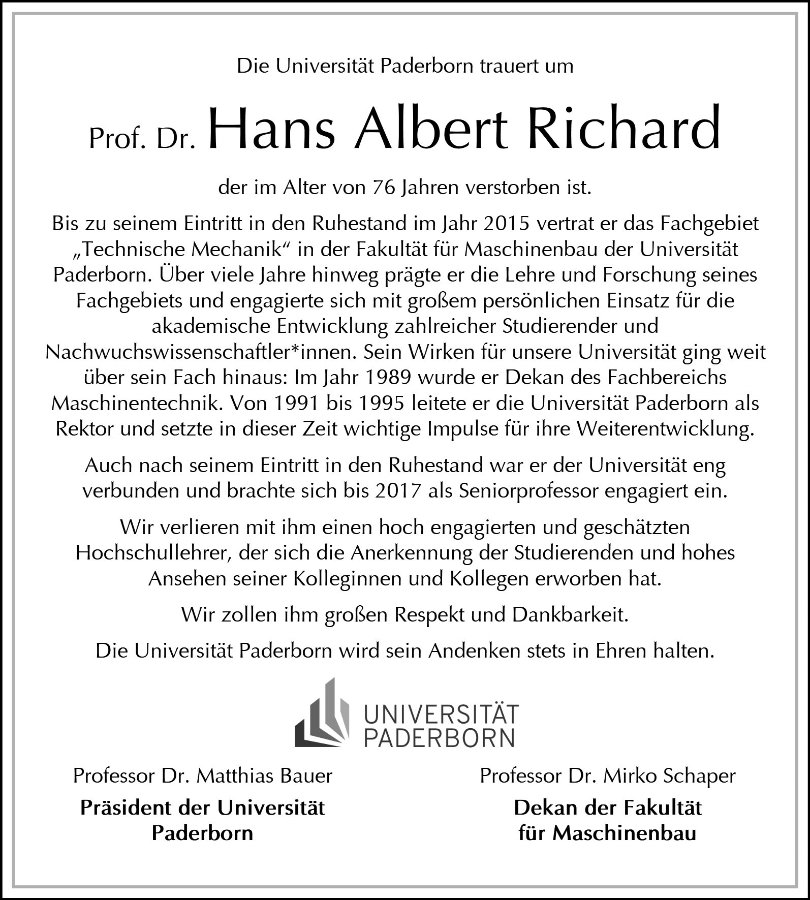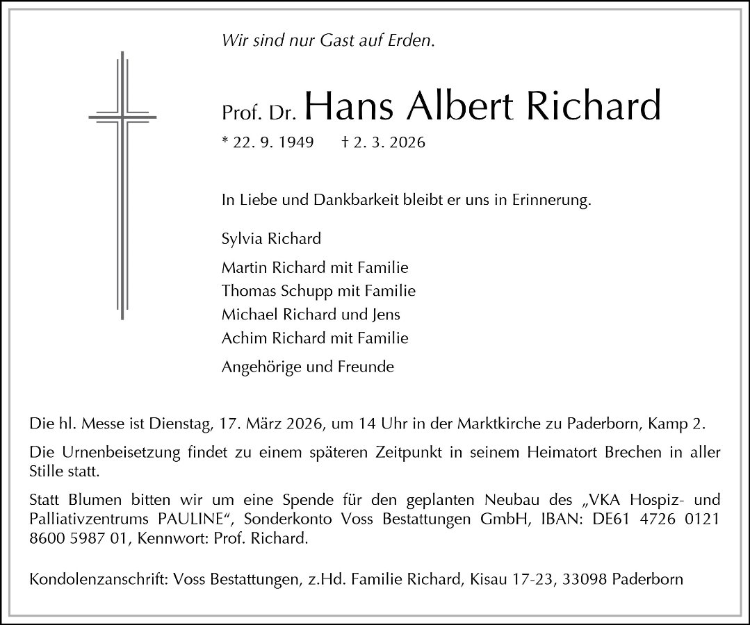 Prof. Dr. Hans Albert Richardgestorben am 2. März 2026