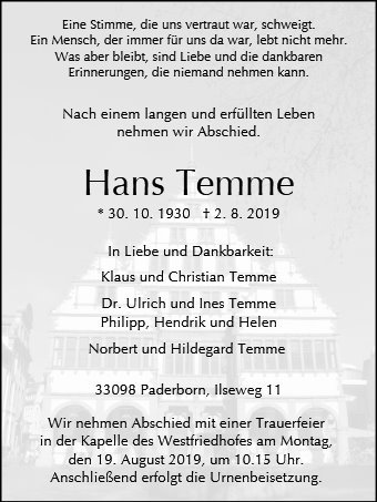 gestorben am 2. August 2019 in Paderborn