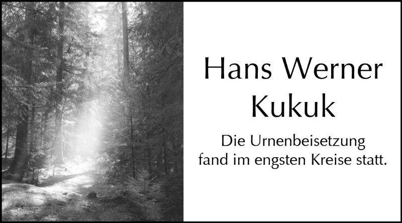 Hans Werner Kukukgestorben am 20. November 2018