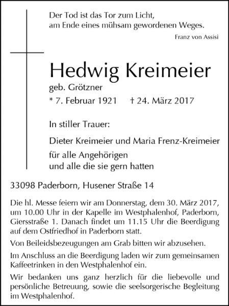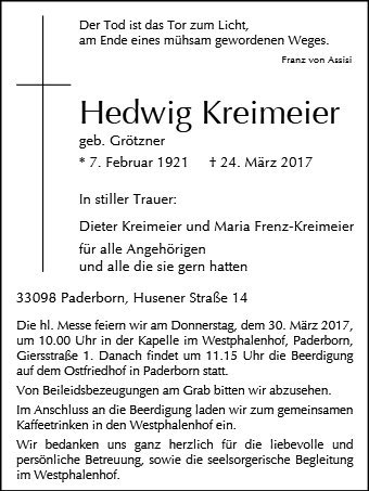 Hedwig Kreimeier geb. Grötzner