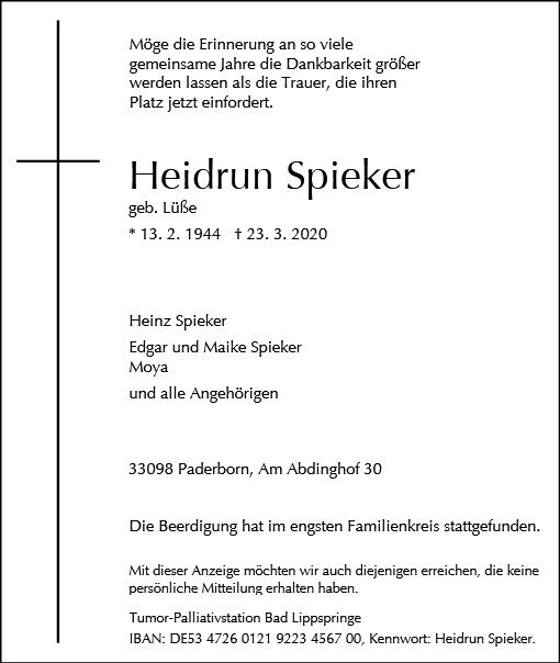 wir wünschen Ihnen für die kommende Zeit viel Kraft und dass es Ihnen gelingt, dankbar auf die positiven Erinnerungen zurückzublicken.