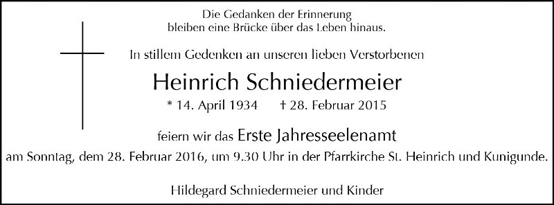 Heinrich Schniedermeiergestorben am 28. Februar 2015