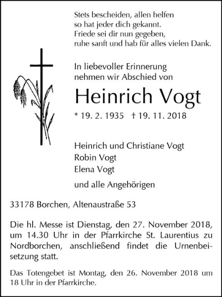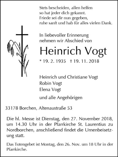 gestorben am 19. November 2018 in Borchen