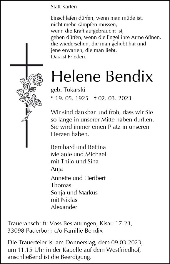 Helene Bendixgestorben am 2. März 2023