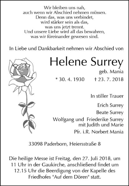 Helene Surrey geb. Mania