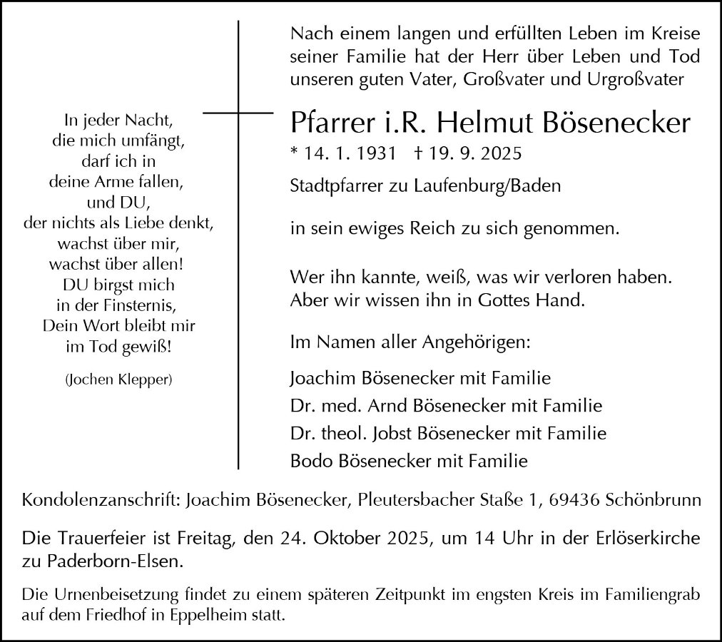 30 Jahre war Helmut Bösenecker 1963 bis 1993 evangelischer Stadtpfarrer in Laufenburg – so lange wie kein anderer vor und nach ihm.