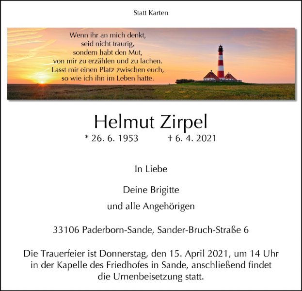 Helmut Zirpelgestorben am 6. April 2021