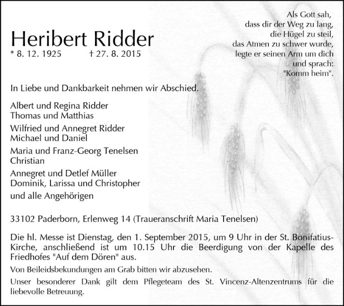 geboren am 8. Dezember 1925 in Herste, jetzt Bad Driburg
