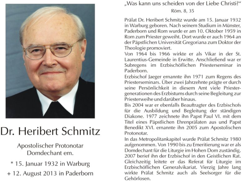 Domdechant, Apostol. Protonotar Dr. Heribert Schmitzgestorben am 12. August 2013