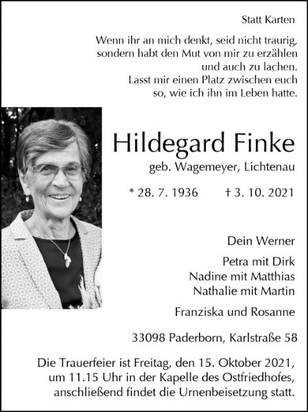 gestorben am 3. Oktober 2021 in Bad Lippspringe