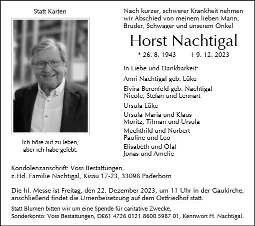 Lieber Horst, mach es gut und Dank für alles, was ich durch dich lernen durfte.