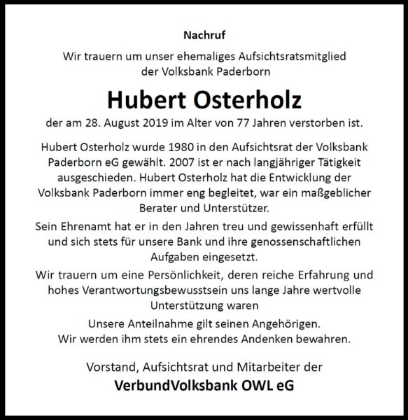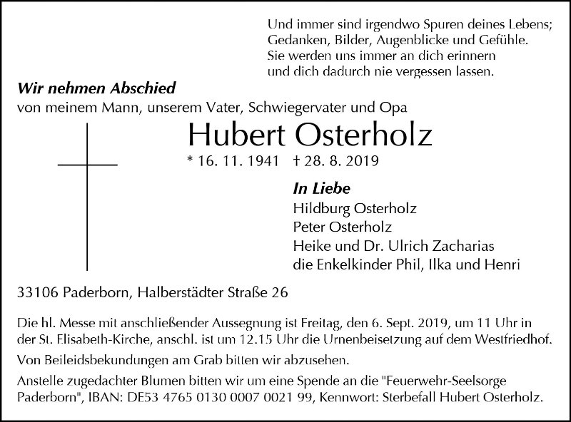 Lieber Hubert, du bist vor mir gegangen, es sollte wohl so sein.