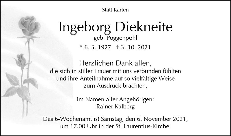 Inge Diekneitegestorben am 3. Oktober 2021