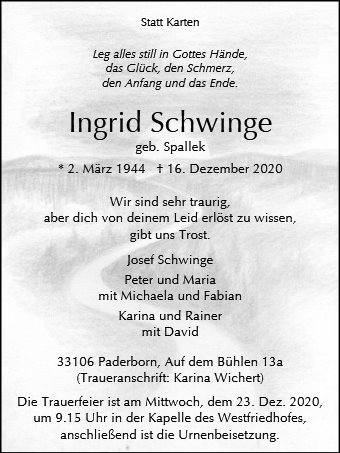 Ingrid Schwinge geb. Spallek