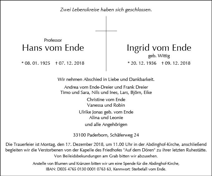 wir wünschen Ihnen für die kommende Zeit viel Kraft und dass es Ihnen gelingt, dankbar auf die positiven Erinnerungen zurückzublicken.