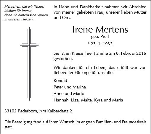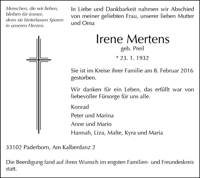Irene Mertens geb. Preil