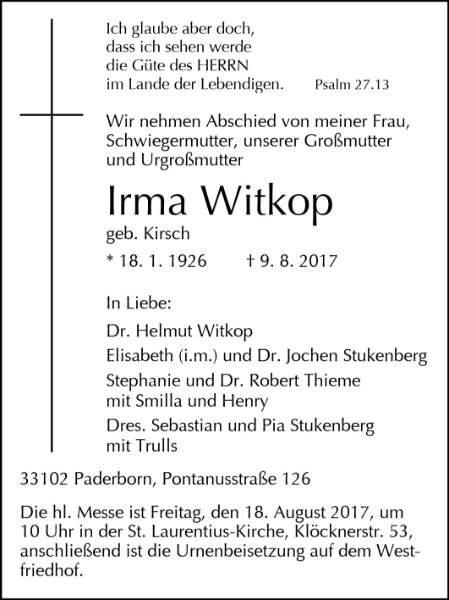 Irma Witkop geb. Kirsch