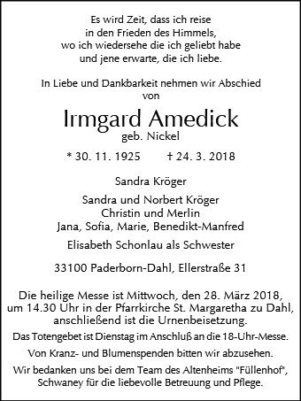 Irmgard Amedick geb. Nickel