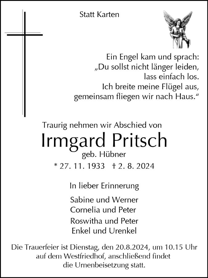 Irmgard Pritschgestorben am 2. August 2024