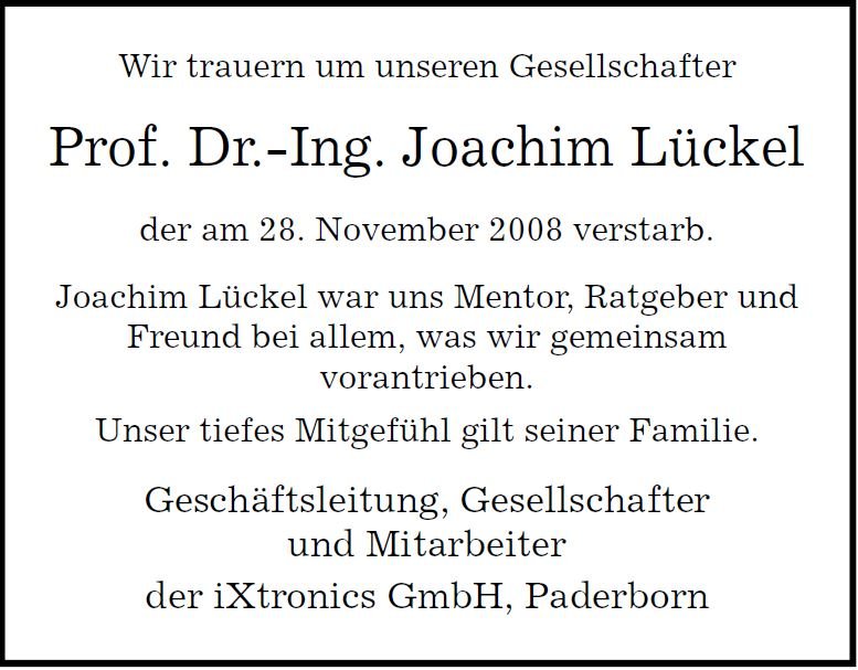 Prof. Dr.-Ing. Joachim Lückelgestorben am 28. November 2008