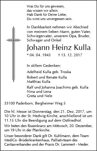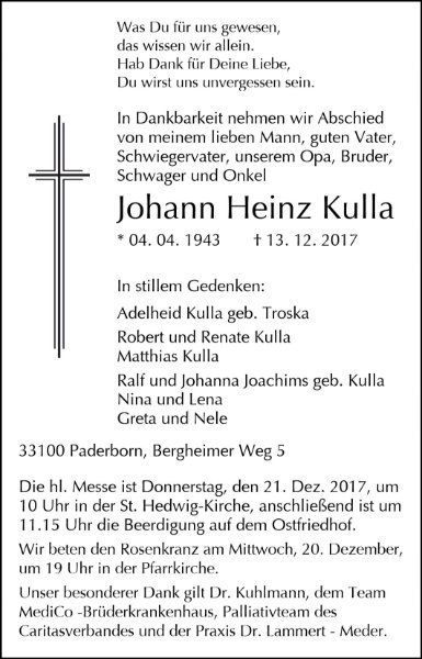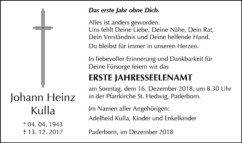 Jahresgedächtnis, Pfarrkirche St. Hedwig
