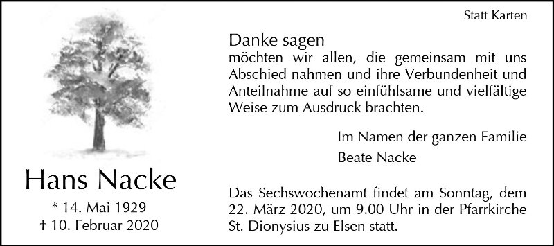 6-Wochen-Gedächtnisamt, Pfarrkirche Elsen