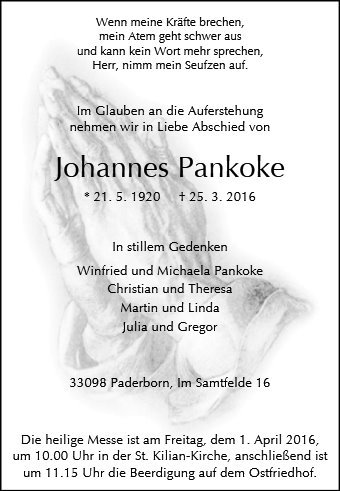Gedächtnisamt, Pfarrkirche St. Kilian
