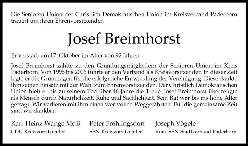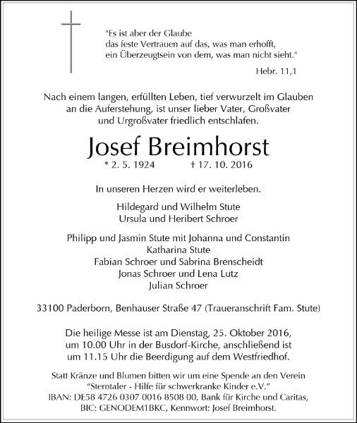 Josef Breimhorstgestorben am 17. Oktober 2016