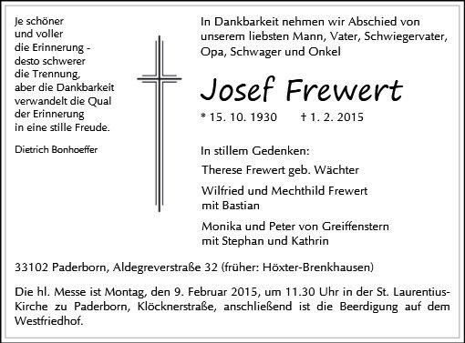 gestorben am 1. Februar 2015 in Paderborn