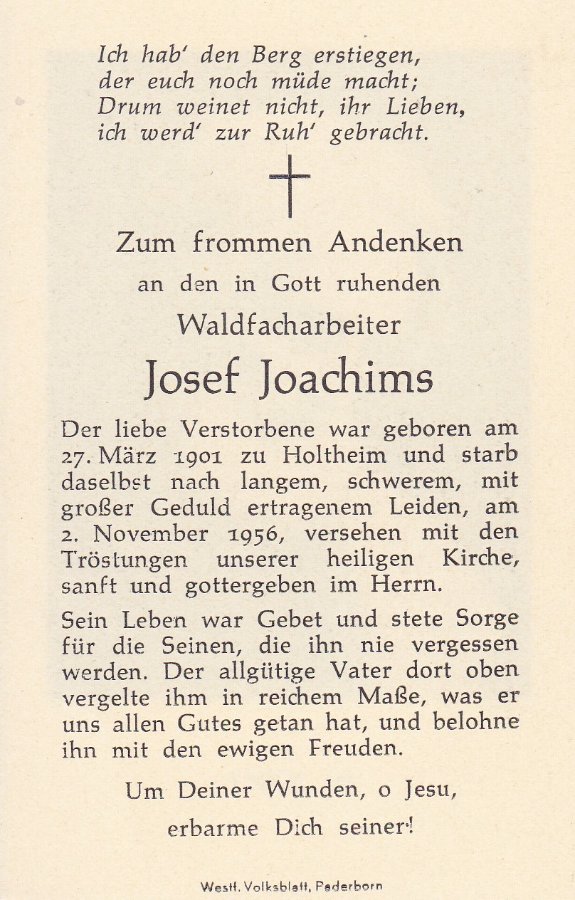 Waldfacharbeiter Josef Joachimsgestorben am 2. November 1956