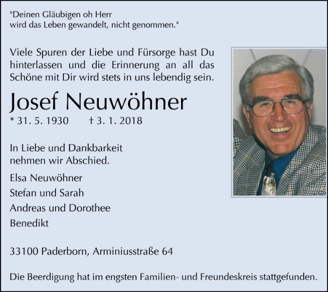 Josef Neuwöhnergestorben am 3. Januar 2018