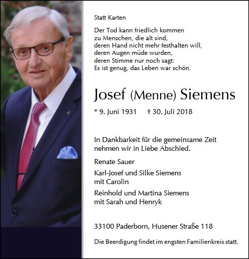 Sehen Sie hier die Termine der Abschieds- und Trauerfeierlichkeiten.