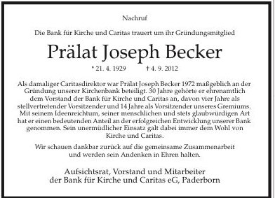 Domkapitular, Prälat Joseph Becker