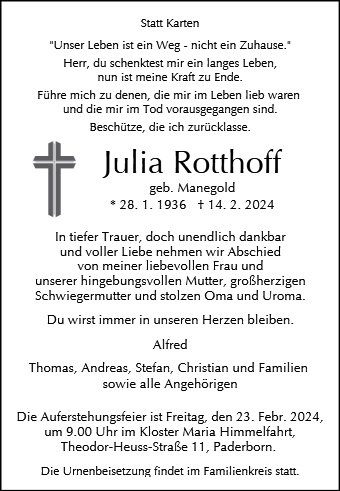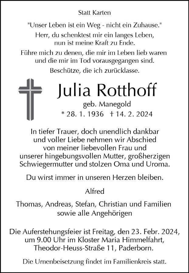wir wünschen Ihnen für die kommende Zeit viel Kraft und dass es Ihnen gelingt, dankbar auf die positiven Erinnerungen zurückzublicken.