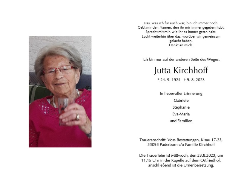 Wir trauern mit Euch und denken an die schönen Momente mit Jutta.