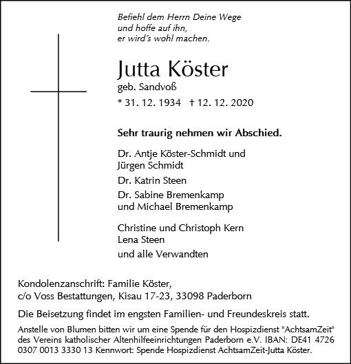 Sehen Sie hier die Termine der Abschieds- und Trauerfeierlichkeiten.