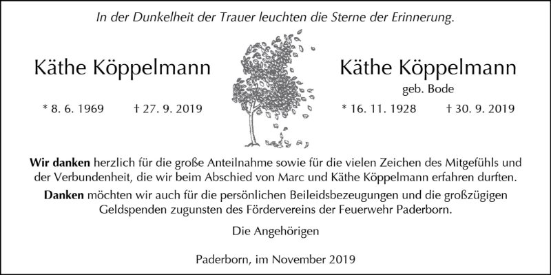 Ich habe leider erst heute erfahren, dass Frau Käthe Köppelmann uns verlassen hat