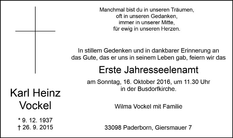 Jahresgedächtnis, Busdorf-Kirche, Paderborn