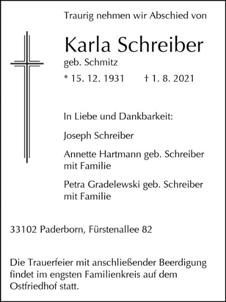 Karola Schreibergestorben am 1. August 2021