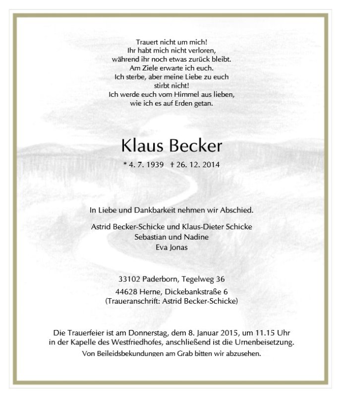 gestorben am 26. Dezember 2014 in Herne
