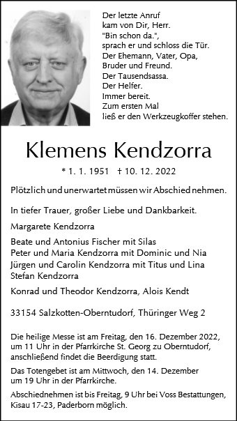 Der Engel hat dich lieber Klemens in das Reich Gottes geführt.