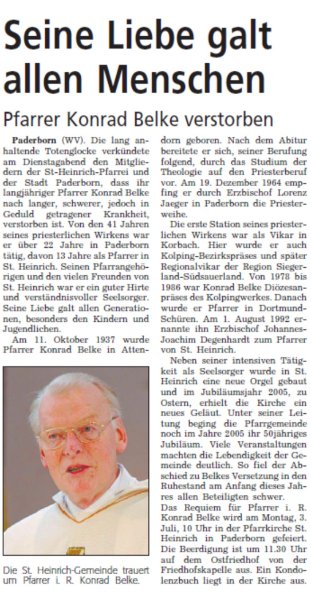 Pfarrer Konrad Belkegestorben am 27. Juni 2006
