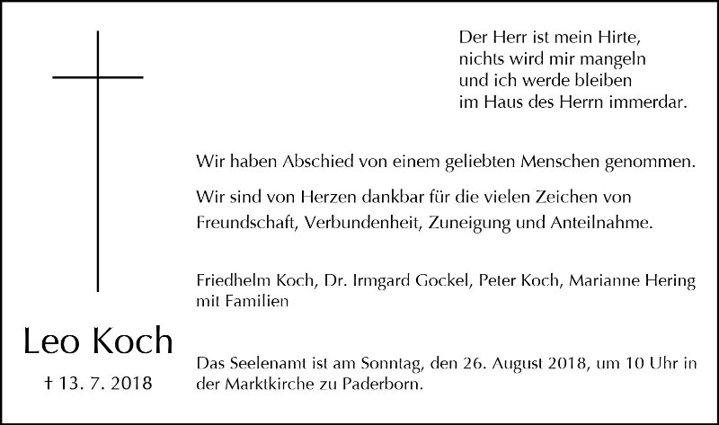 6-Wochen-Gedächtnisamt, Marktkirche, Paderborn