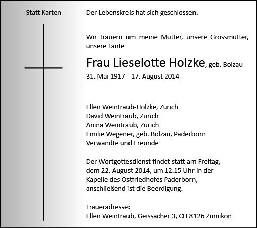 Lesen Sie hier die Anzeigen und Trauerpost!