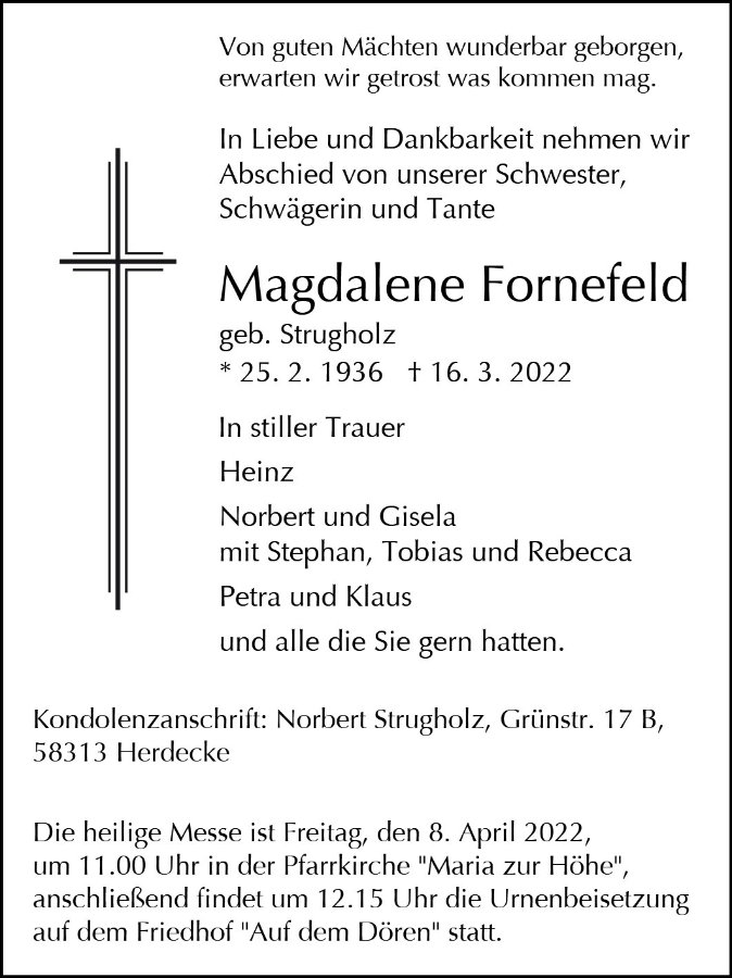 Magdalene Fornefeld geb. Strugholz