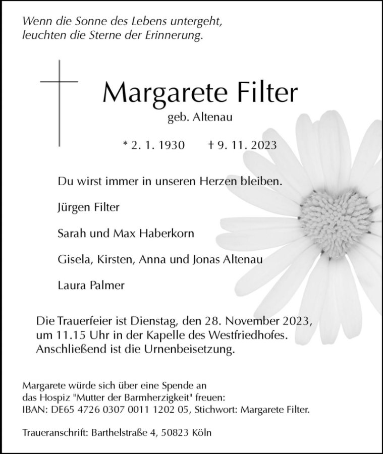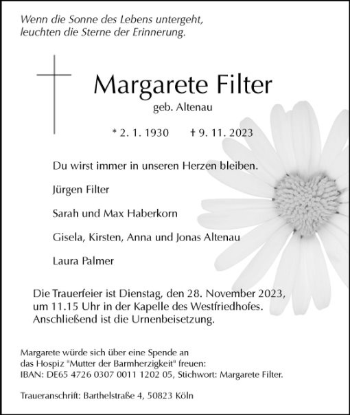 Mit dem Anzünden einer Kerze oder Mitteilen von Gedanken in ganz persönlichen Worten können Verwandte, Freunde oder Bekannte an Ihre liebe Verstorbene denken.