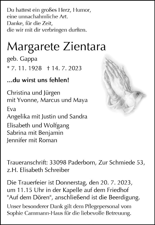 Lesen Sie hier die Anzeigen und Trauerpost!