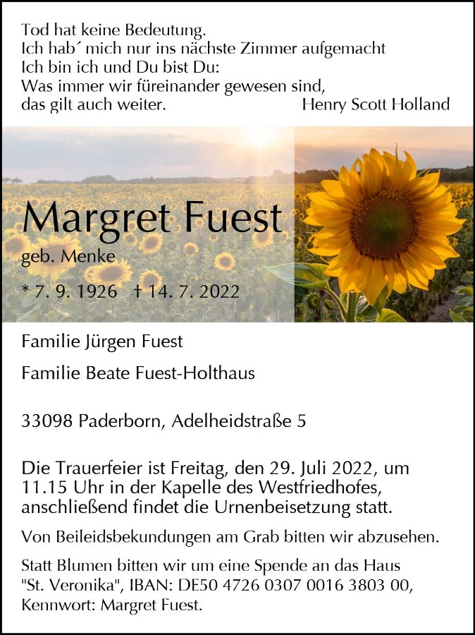 Margret Fuestgestorben am 14. Juli 2022