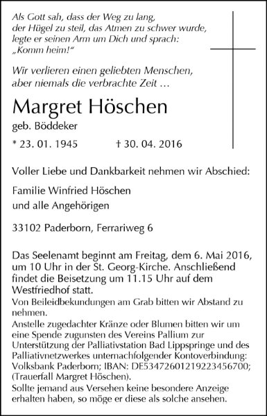 Margret Höschengestorben am 30. April 2016